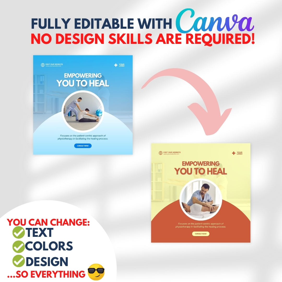 🎥 Physiotherapy Videos - 20 Templates: Share educational and promotional videos tailored for social media.