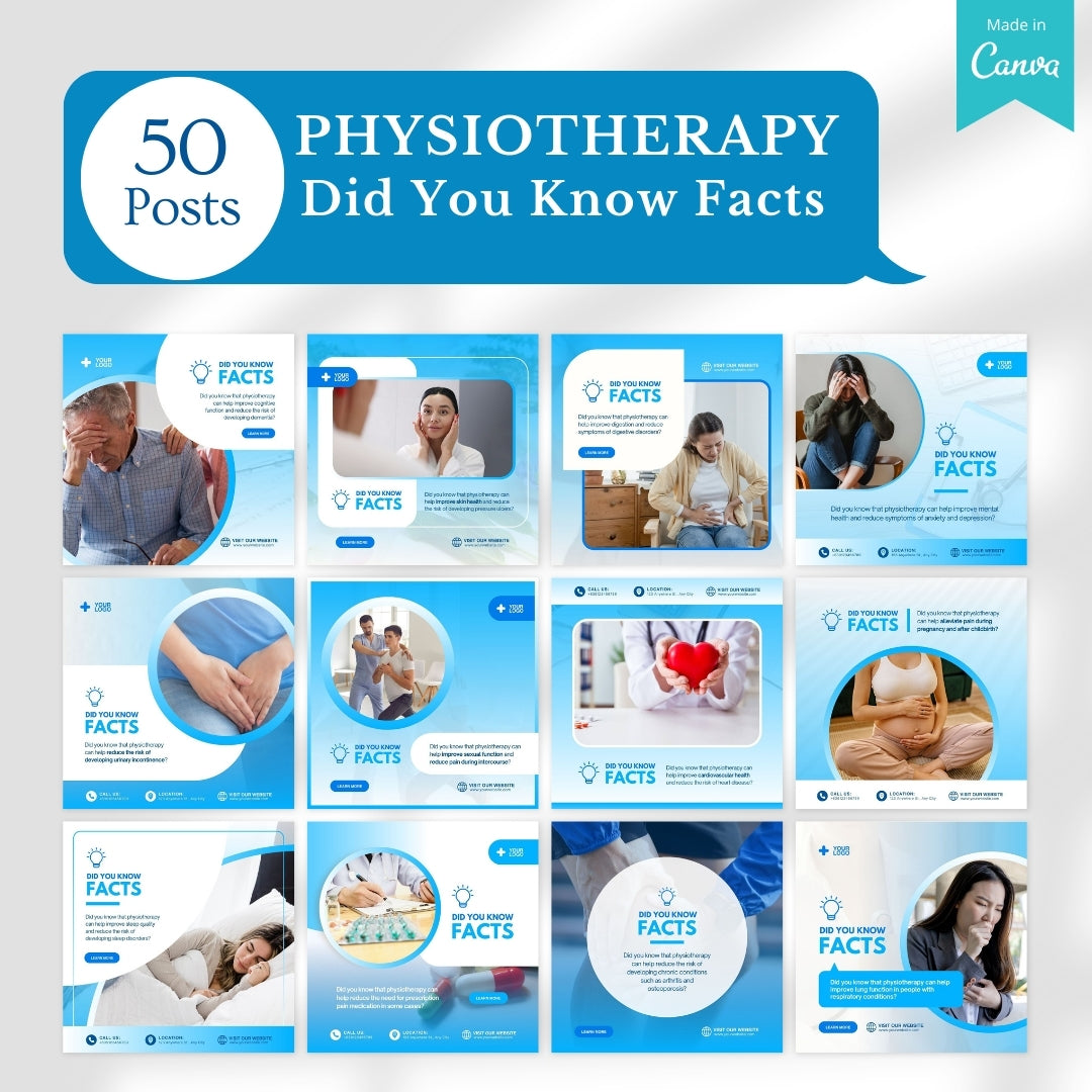 ❓ Physiotherapy "Did You Know?" Facts - 50 Templates: Educate your audience with interesting facts about physiotherapy.
