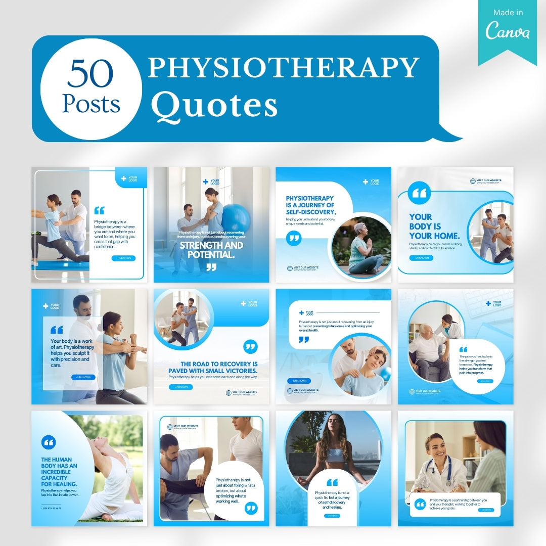 💬 Physiotherapy Quotes - 50 Templates: Inspire your audience with motivational quotes related to health and wellness.