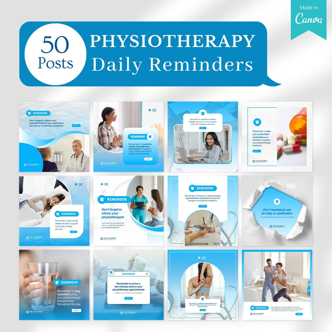 ⏰ Physiotherapy Daily Reminders - 50 Templates: Keep your audience engaged with daily health and wellness reminders.